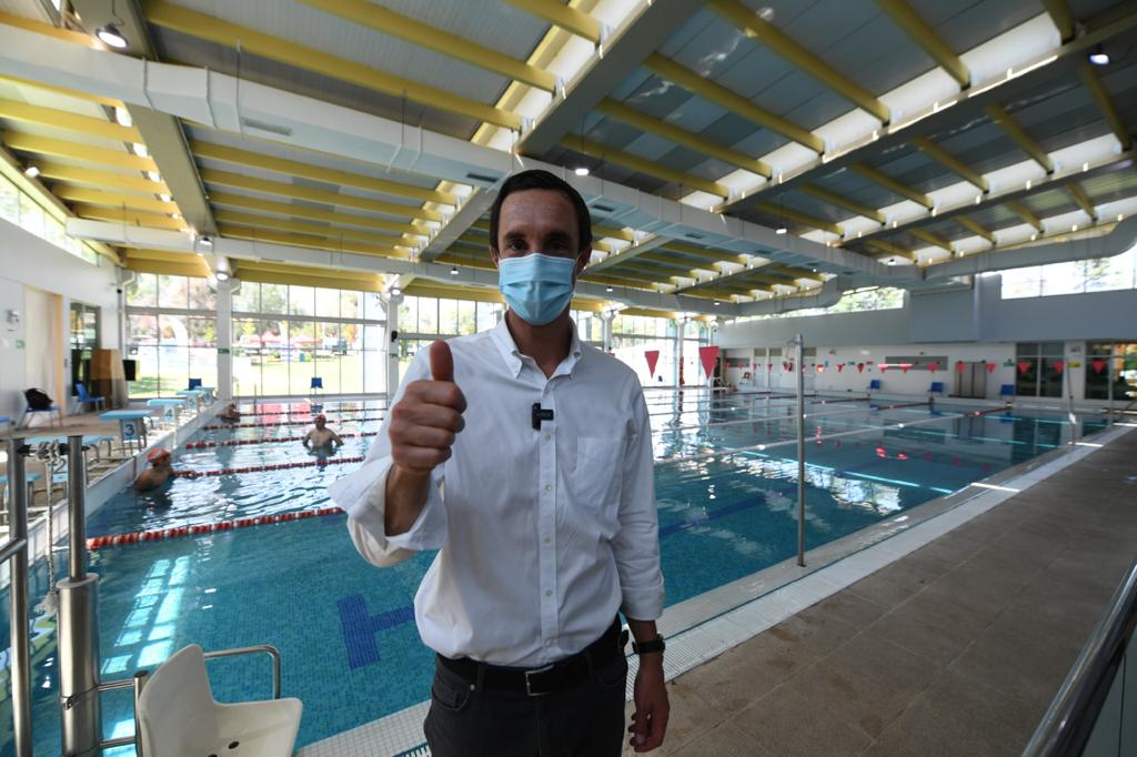 Las autoridades también destacaron la “nueva cara” que exhibe la piscina semiolímpica de Peñalolén, la que reinició sus talleres tras la cuarentena. El recinto municipal fue intervenido con los cambios de revestimiento al interior de la pileta y de ventanales, y las reparaciones de filtraciones, llaves, duchas y pintura interior, cuyos trabajos fueron ejecutados por los mismos funcionarios de la Corporación de Deportes de la comuna.
