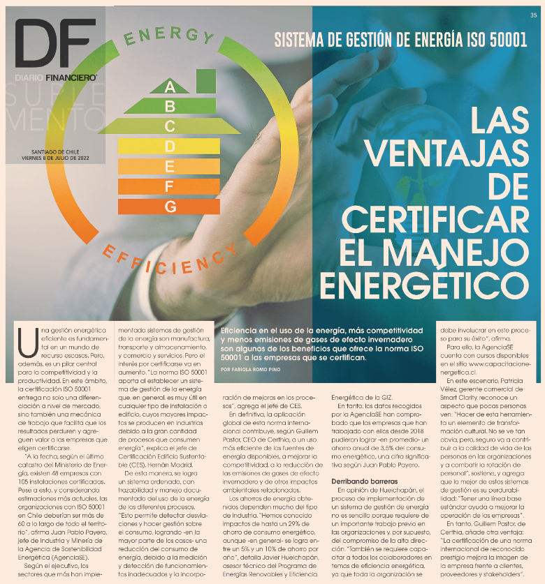 En definitiva, la aplicación global de esta norma internacional contribuye, según Guillem Pastor, CEO de Certhia, a un uso más eficiente de las fuentes de energía disponibles, a mejorar la competitividad, a la reducción de las emisiones de gases de efecto invernadero y de otros impactos ambientales relacionados.
