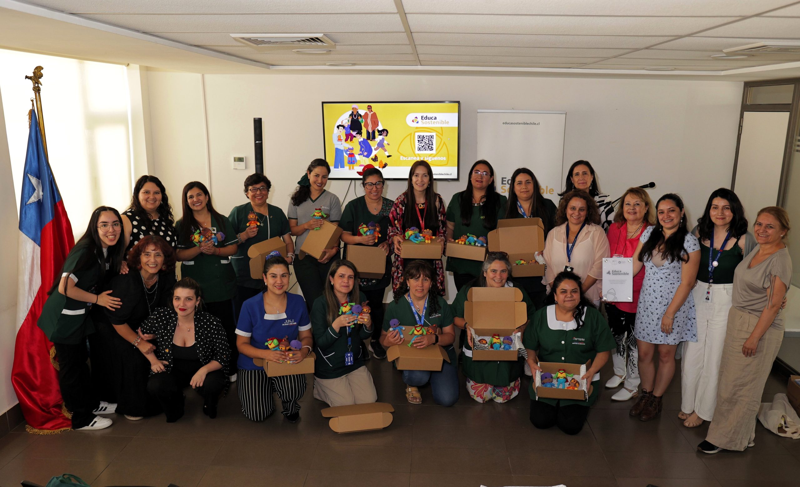 Todas las directoras recibieron una placa que identifica al establecimiento como uno de los beneficiarios de Educa Sostenible, y las educadoras recibieron un especial regalo que las emocionó: los amigurumis o muñecos tejidos, de los 3 superhéroes energéticos.