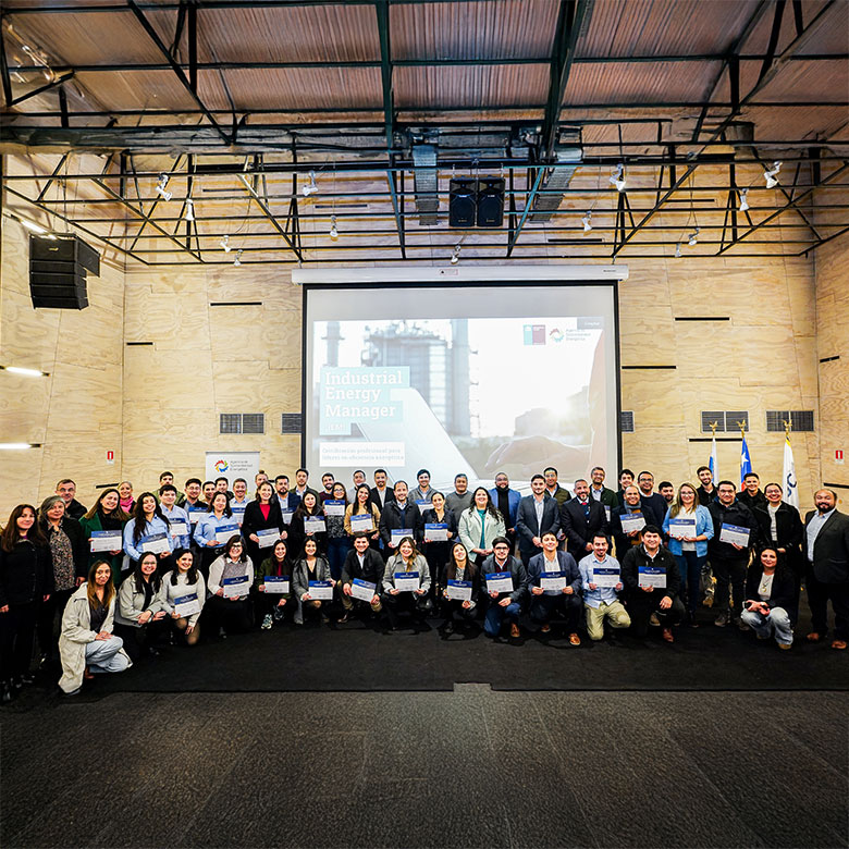 El pasado 30 de julio, se realizó la ceremonia de entrega de certificados a los profesionales que aprobaron el Programa de Formación Profesional de Gestores Energéticos en la Industria y Minería, obteniendo así la certificación Industrial Energy Manager (IEM). La actividad se llevó a cabo en dependencias de Duoc UC, campus San Joaquín, con la participación de autoridades del sector, docentes, egresados/as y representantes de organizaciones participantes.
