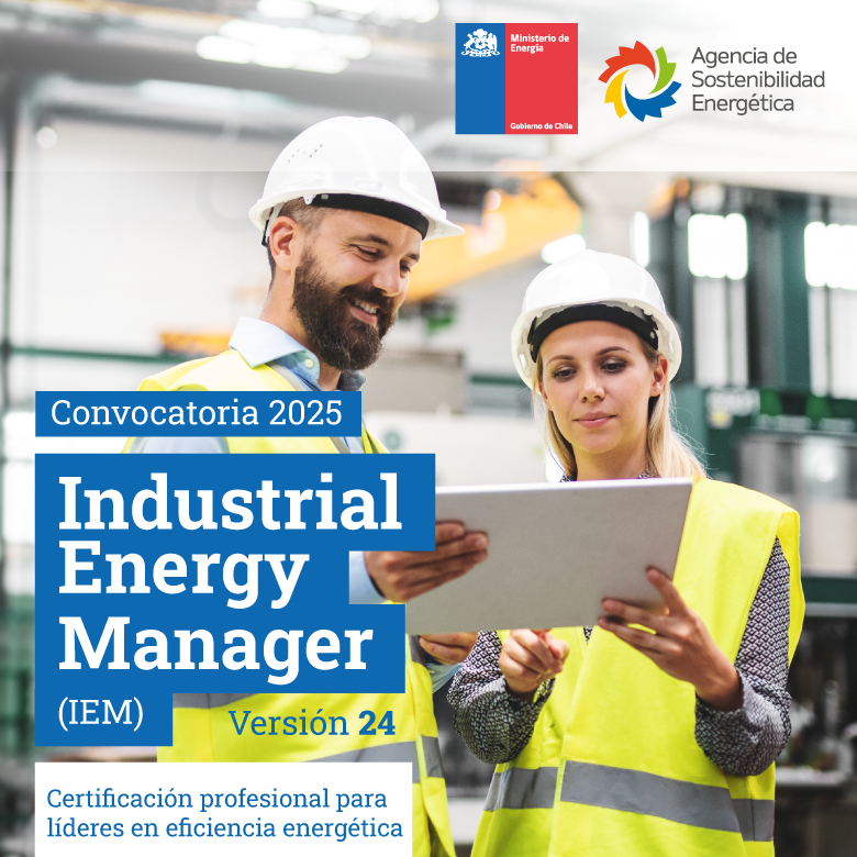 El Ministerio de Energía y la Agencia de Sostenibilidad Energética (AgenciaSE) invitan a postular al Programa de Formación Profesional de Gestores Energéticos en la Industria y Minería – Versión 24, una oportunidad única para que profesionales y técnicos/as puedan certificarse como Industrial Energy Manager (IEM) y contribuir a una gestión energética más eficiente y sostenible en sus organizaciones.