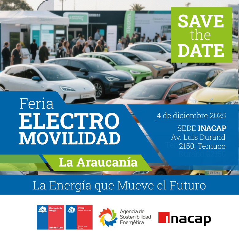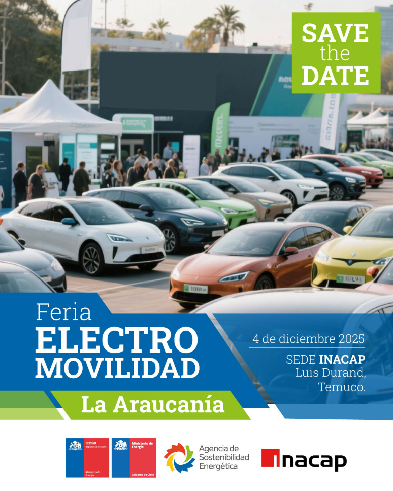 La Región de La Araucanía será sede de la Feria de Electromovilidad 2025, que se realizará el jueves 4 de diciembre en INACAP Temuco (Luis Durand 02150). El evento, organizado por la Agencia de Sostenibilidad Energética (AgenciaSE), la SEREMI de Energía de La Araucanía e INACAP Temuco, busca consolidar a la región como un polo de innovación en transporte sostenible y electromovilidad, fomentando la colaboración entre el sector público, privado y académico.